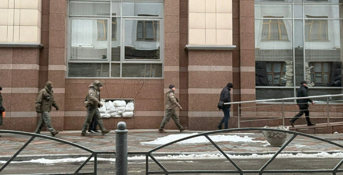 უკრაინის ეროვნული ანტიკორუფციული ბიუროს დეტექტივები უმაღლის რადას შენობასთან