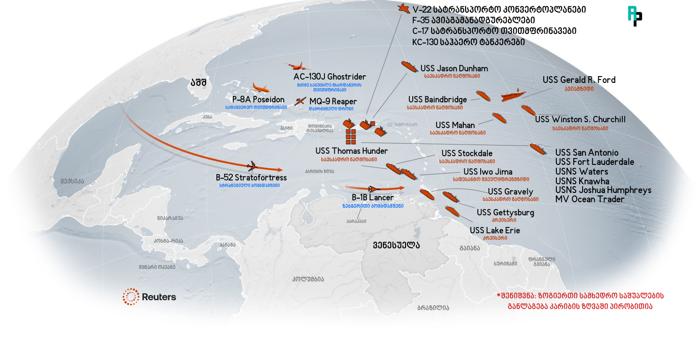 წარუმატებელი დიპლომატიიდან ძალის ცივ რეალობაზე გადასვლისას, პრეზიდენტმა ტრამპმა „გემების დიპლომატიის“ გზა აირჩია და კარიბის ზღვის აუზში ამერიკული სამხედრო ძალების უპრეცედენტო რაოდენობა მოაგრავა.